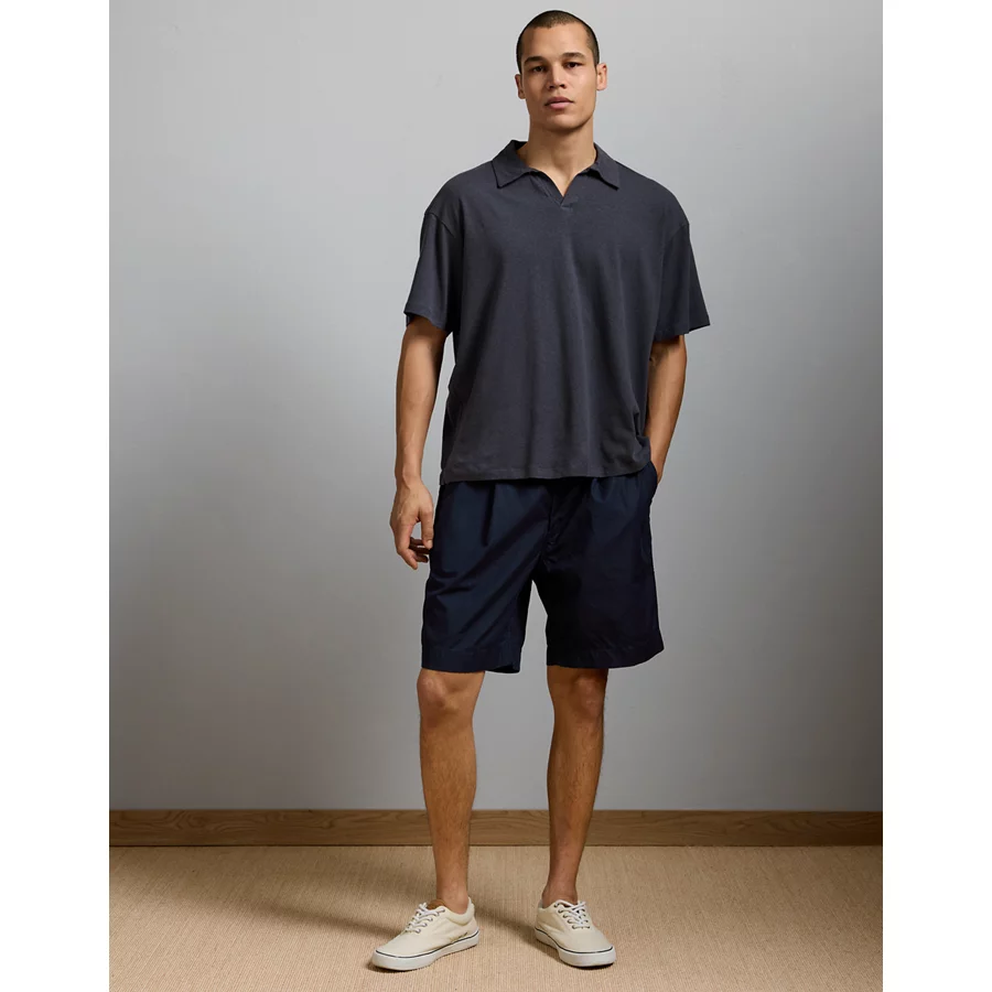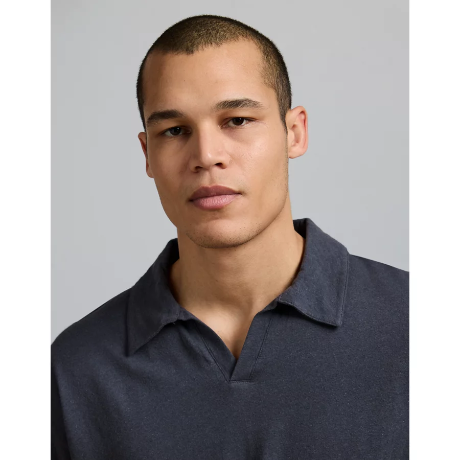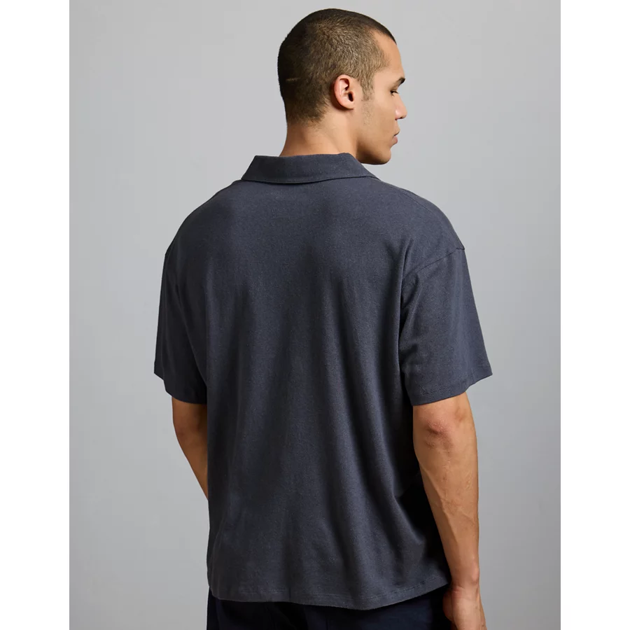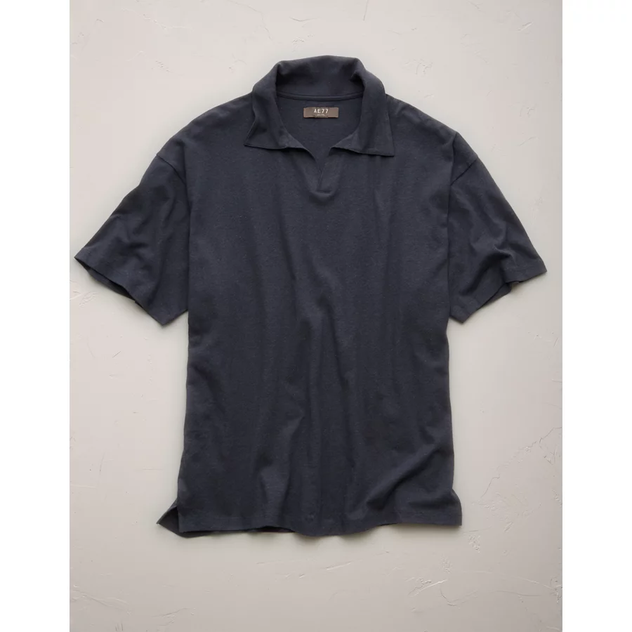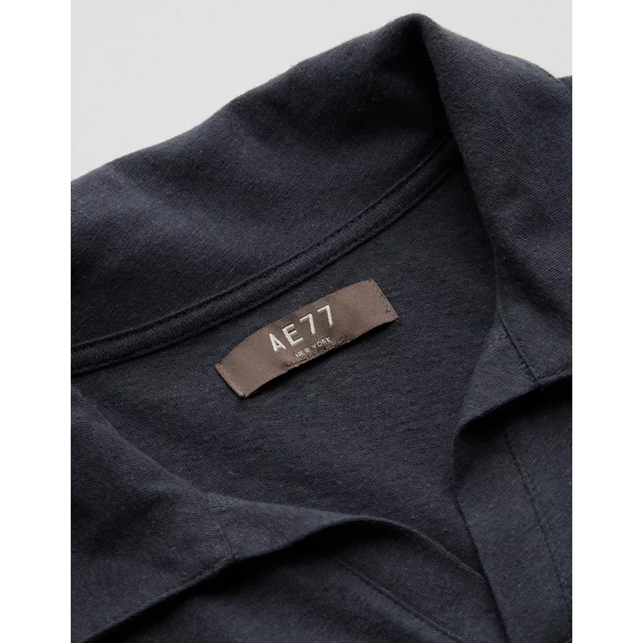 AE77 Premium Linen-Blend Polo Shirt – Navy