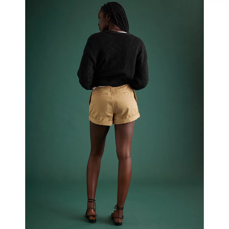 Dreamy, drapey denim with a hint of stretchDark washDouble shank buttonUtility-inspired pocketsThis short is Real Good: Made with the planet