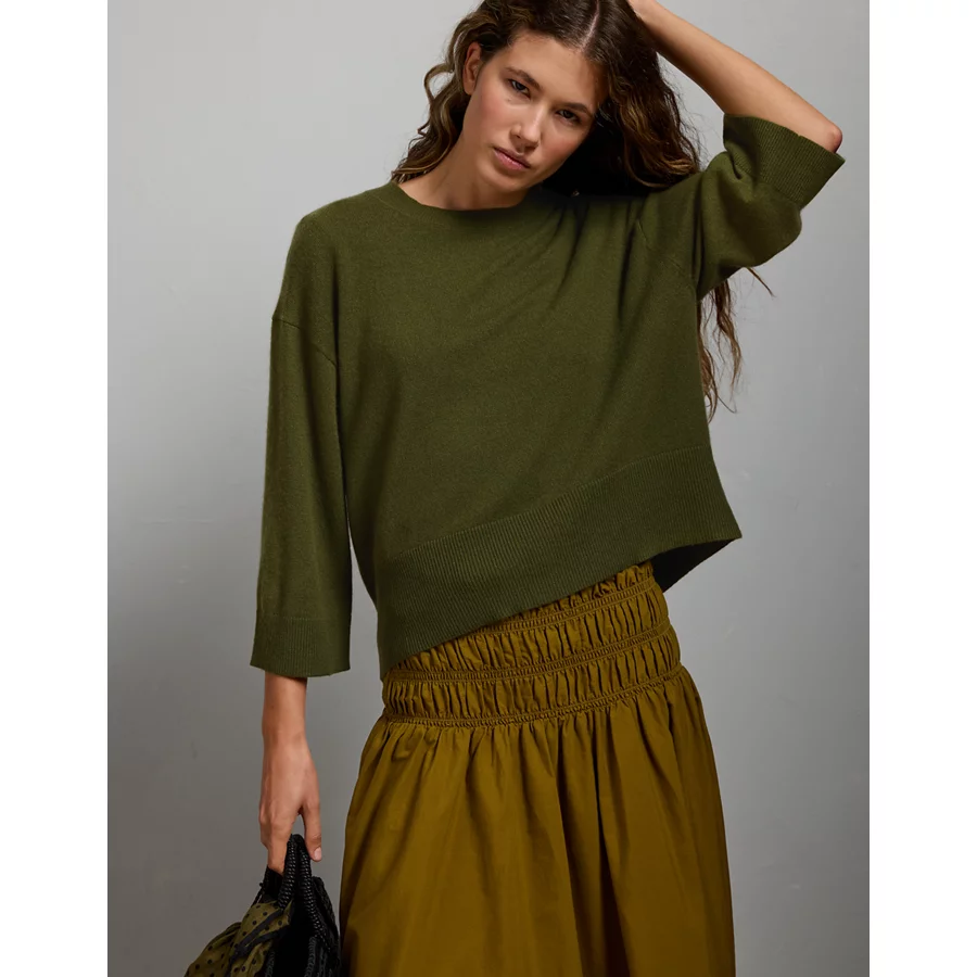 AE77 Premium Oversized Cashmere Sweater T-Shirt – Olive