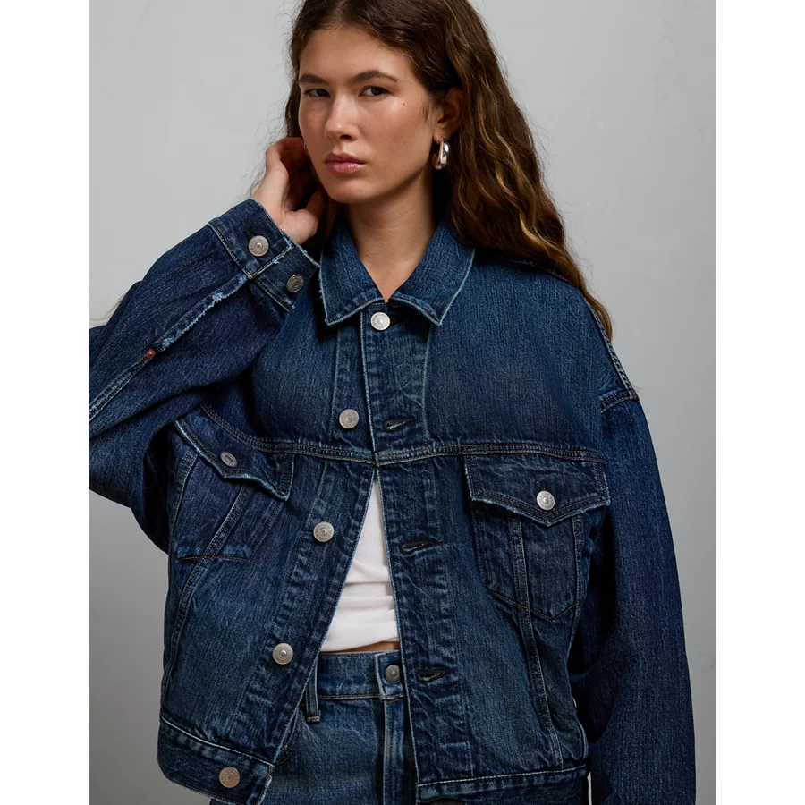 AE77 Premium Oversized Denim Jacket – Dark Wash