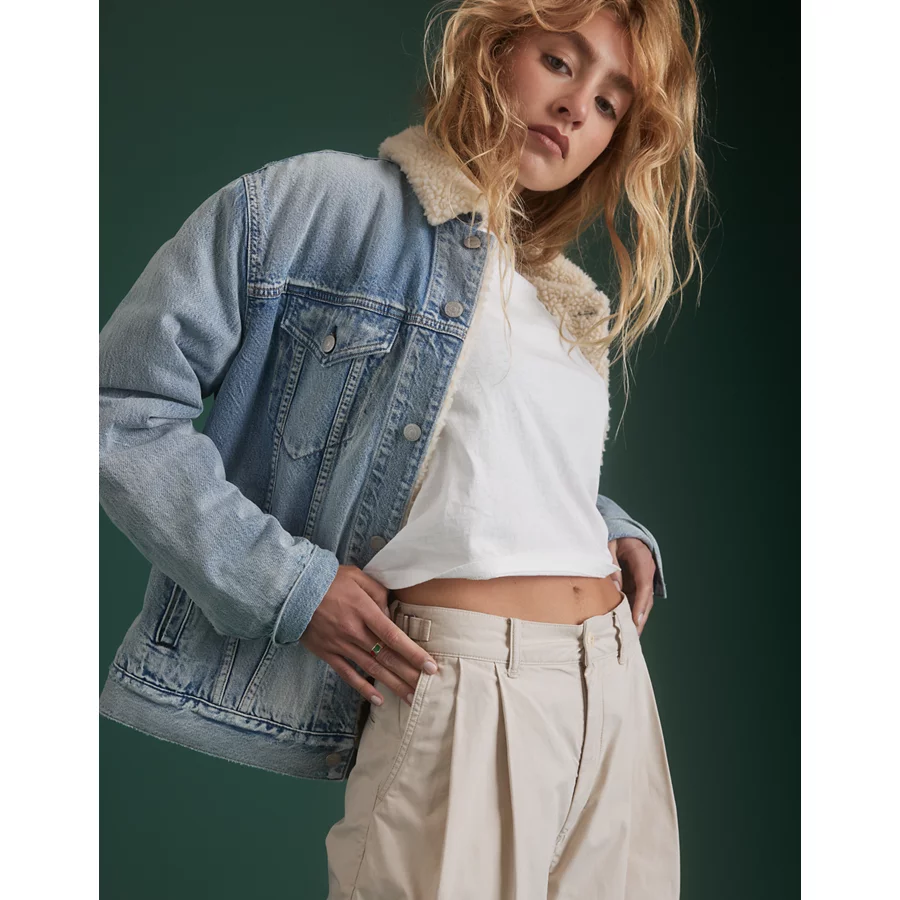 Soft, drapey denim with a hint of stretchWhite washRaw hemThis is Real Good: Made with the planet in mind &