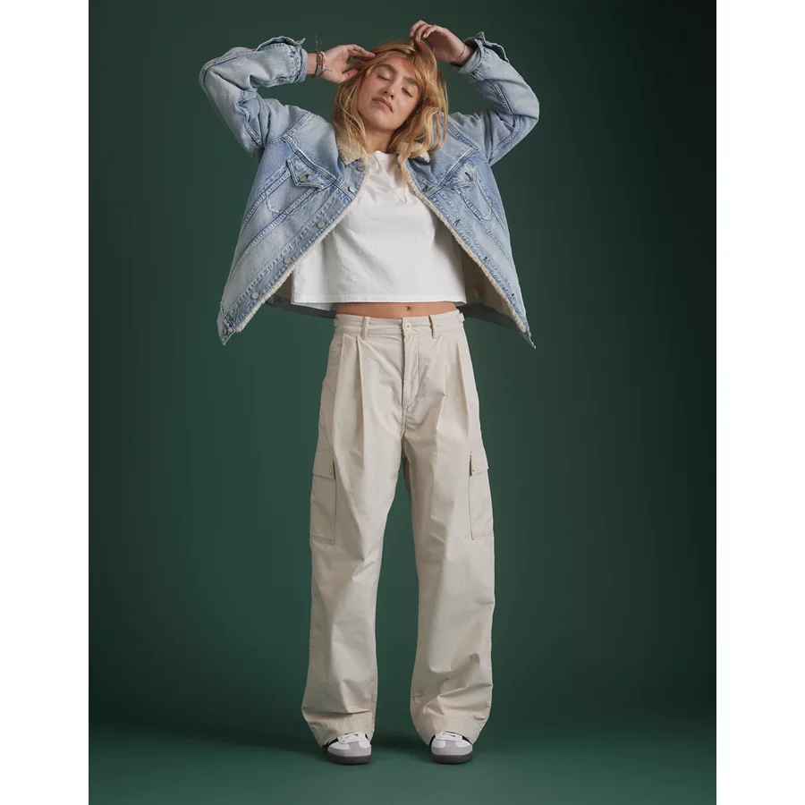 Soft, drapey woven fabric with stretchClassic jean-inspired pocket styling 61% Cotton, 18% TENCEL™ Lyocell, 20% Recycled Cotton, 1% ElastaneMachine washImported