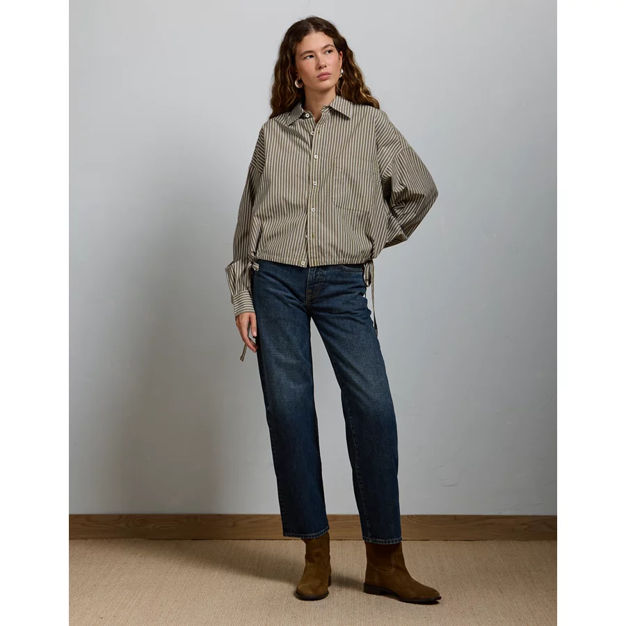 AE 8″ Dreamy Drape Stretch Low-Rise Baggy Jort – Medium Bright Indigo