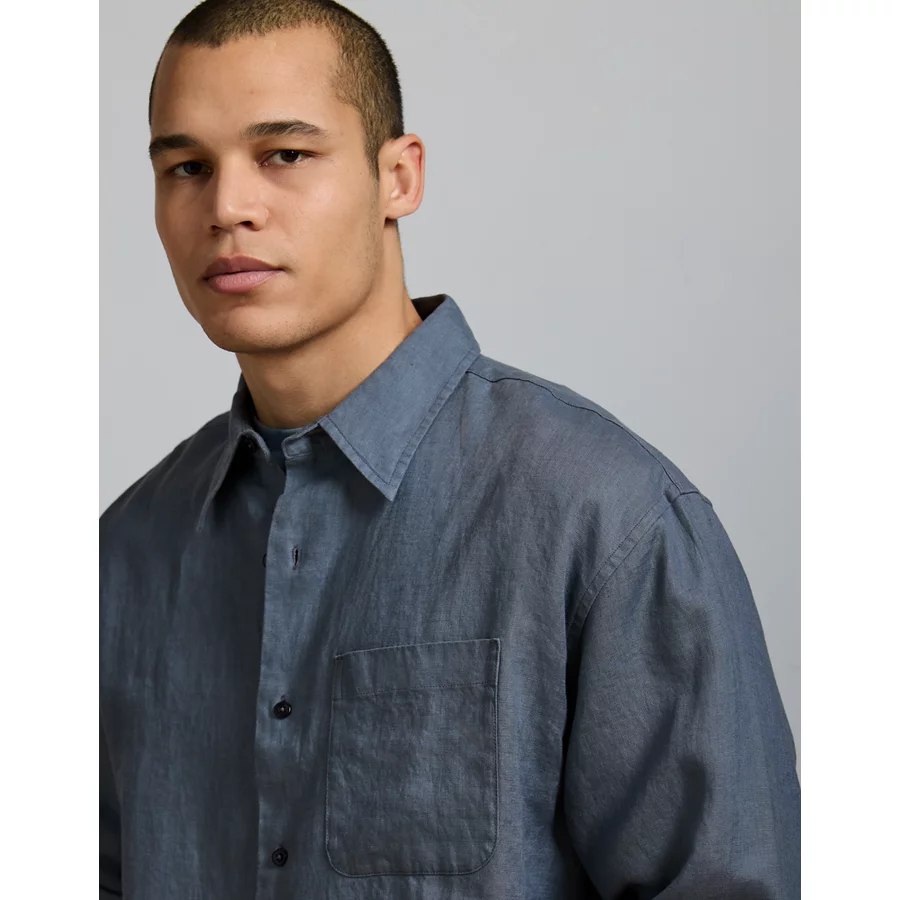 AE77 Premium Relaxed Linen Button-Up Shirt – Blue