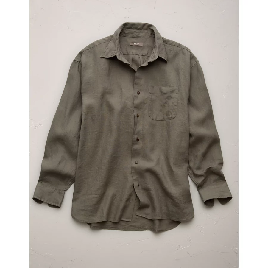 AE77 Premium Relaxed Linen Button-Up Shirt – Green