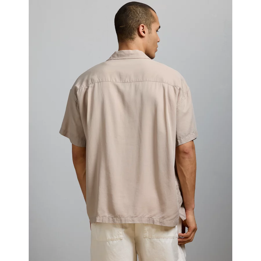 AE77 Premium Relaxed Short-Sleeve Button-Up Shirt – Khaki