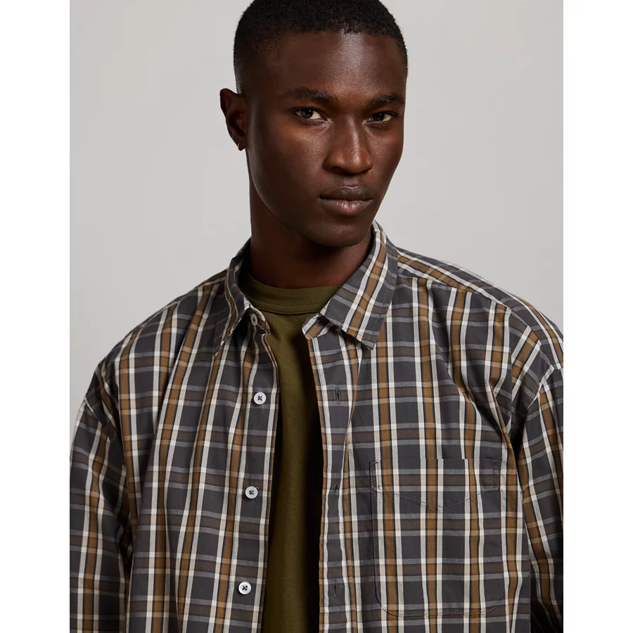 AE77 Premium Relaxed Short-Sleeve Button-Up Shirt - Olive