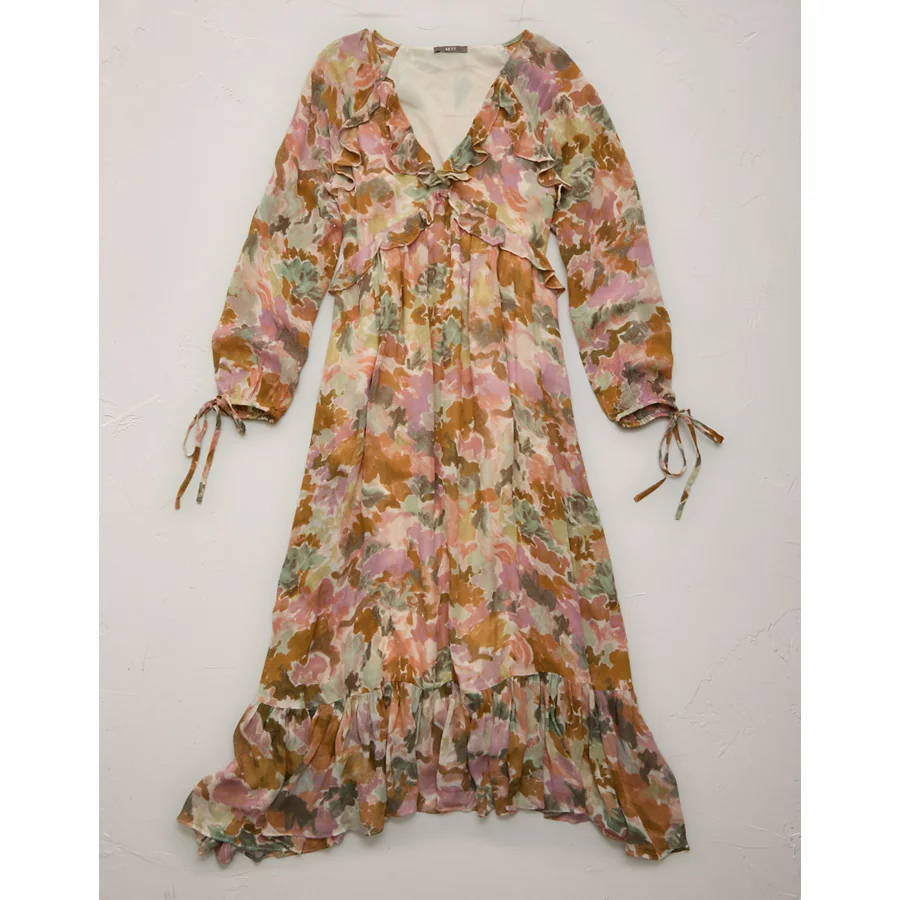 AE77 Premium Ruffled Chiffon Midi Dress – Multi