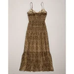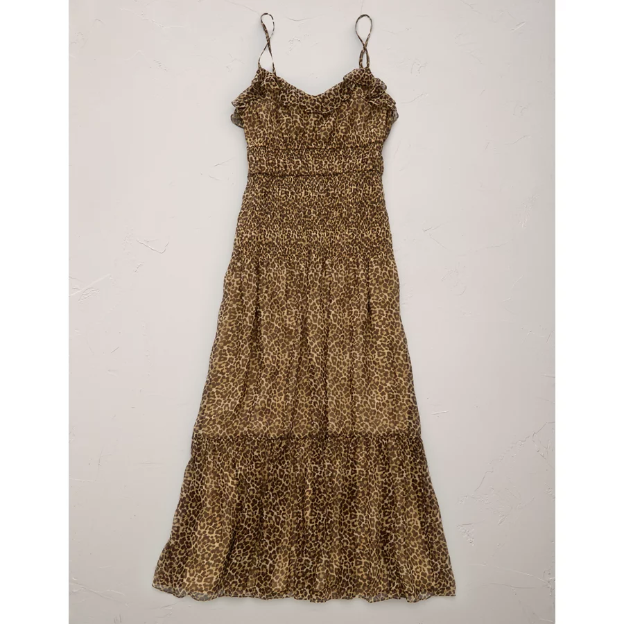 AE77 Premium Smocked Maxi Dress - Brown
