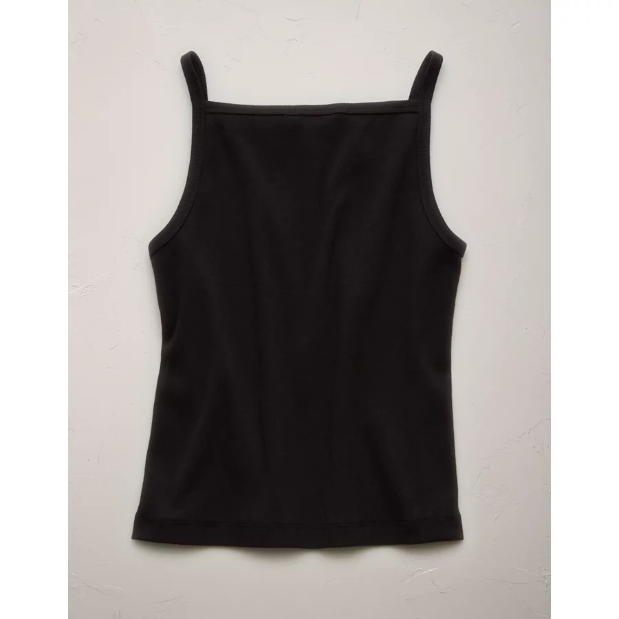 AE77 Premium Straight Neck Tank Top – Black