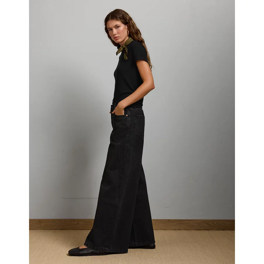 AE77 Premium Super Wide Side Stripe Jean - Medium Wash