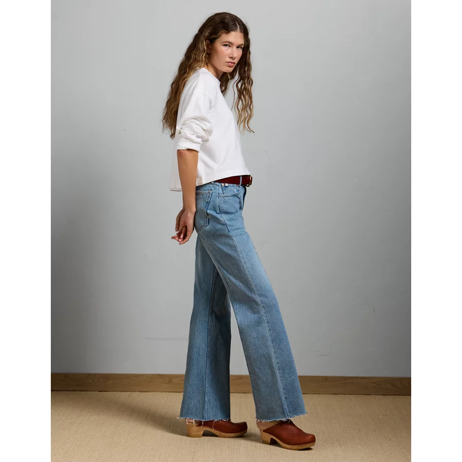 Relaxed wide leg into a subtle flare