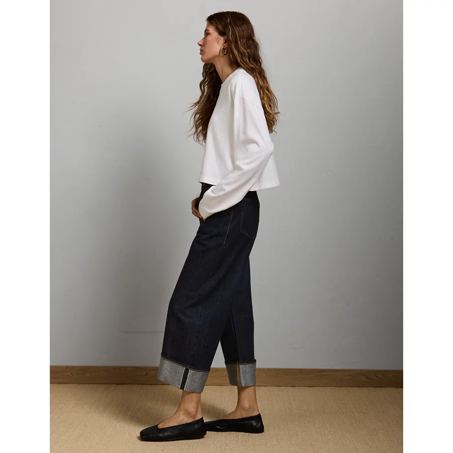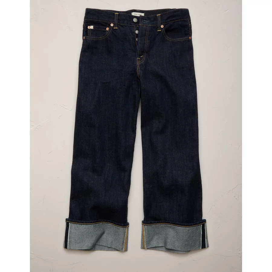 AE77 Premium Wide Crop Cuff Jean – Dark Rinse