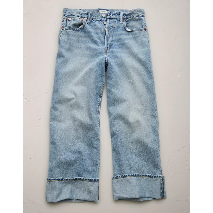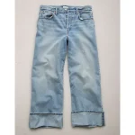AE77 Premium Wide Crop Cuff Jean – Light Wash