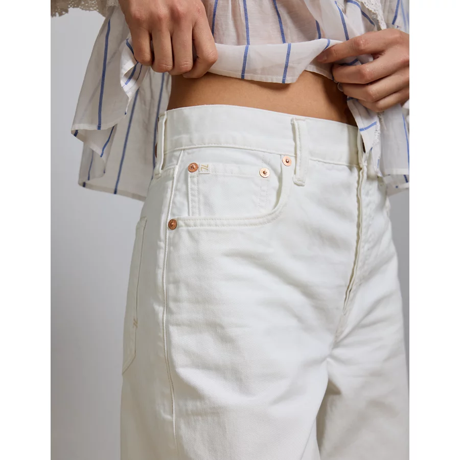 Looks like: A low & loose jean with a slightly slouchy inseam & a bold wide leg. Size down for a more fitted look.