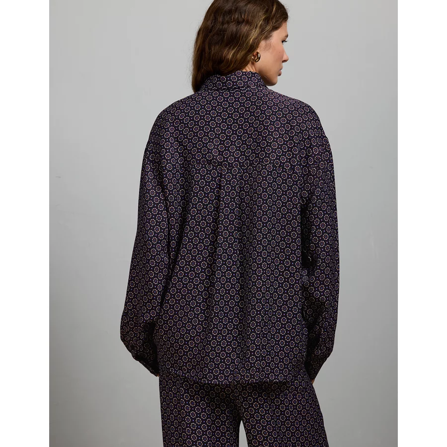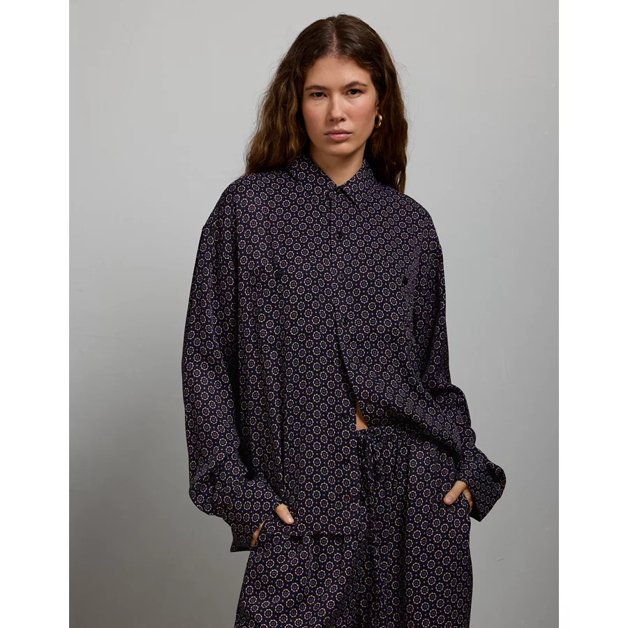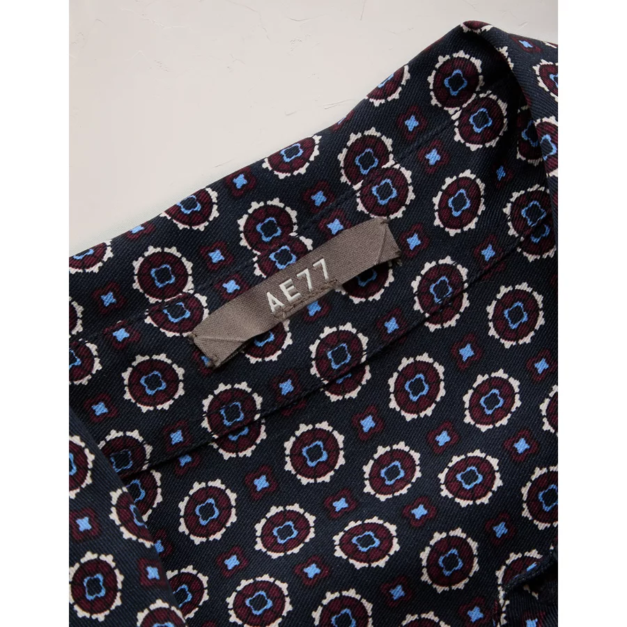 AE77 Relaxed Button-Up Printed Shirt – Blue