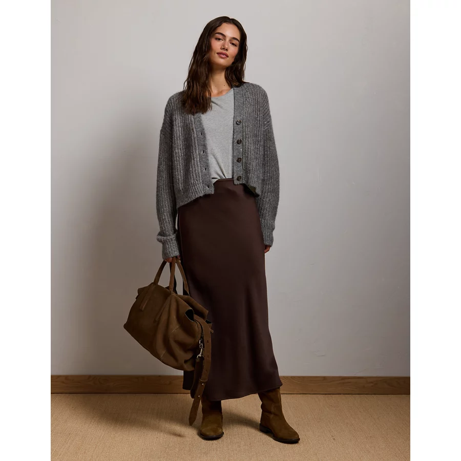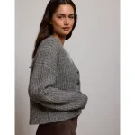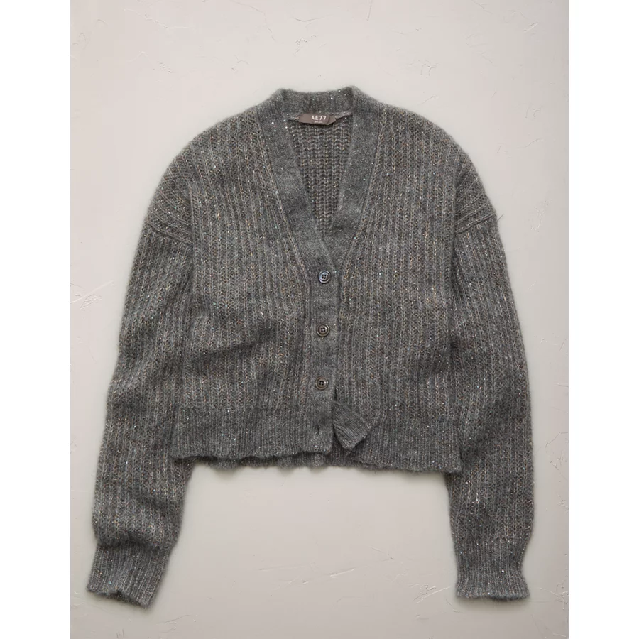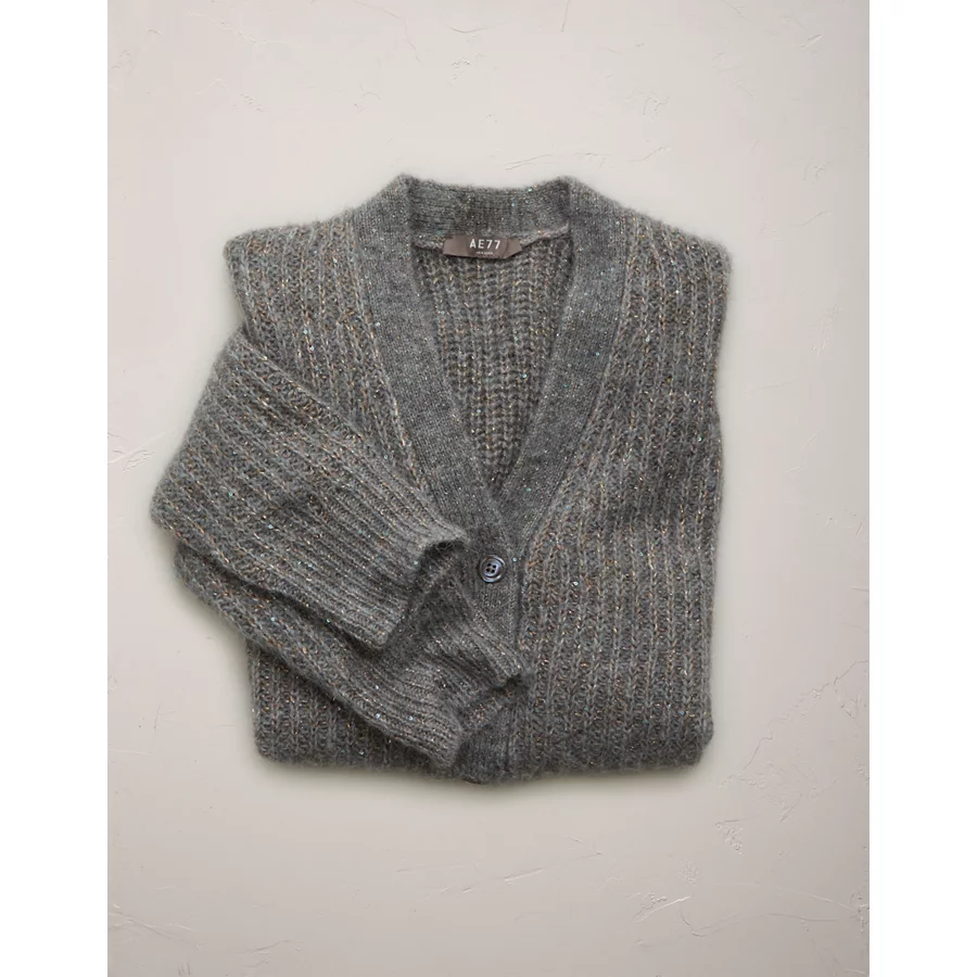 AE77 Shaker Stitch Cardigan Sweater – Grey