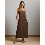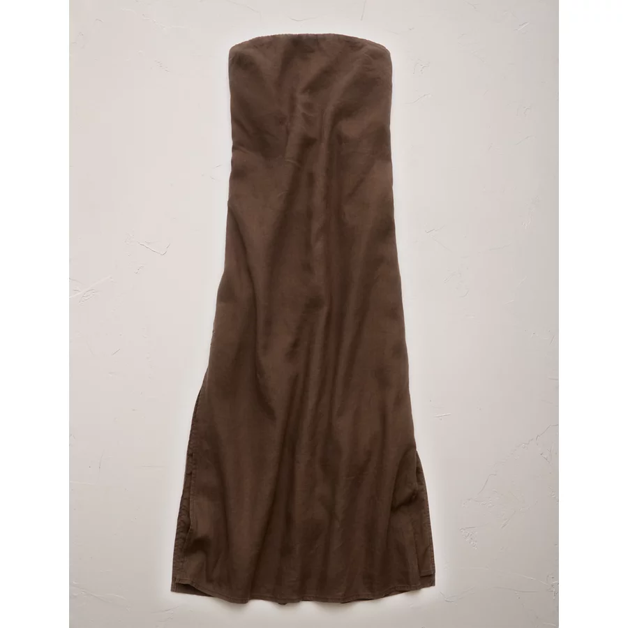 AE77 Strapless Linen Midi Dress – Brown