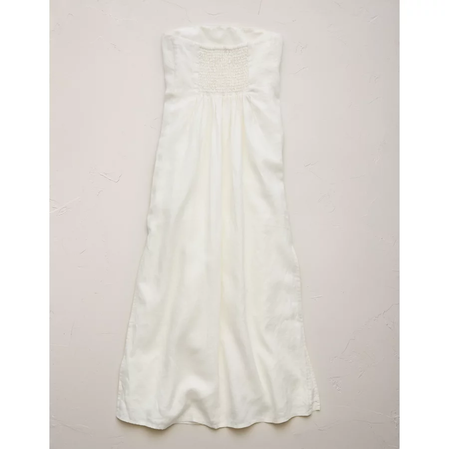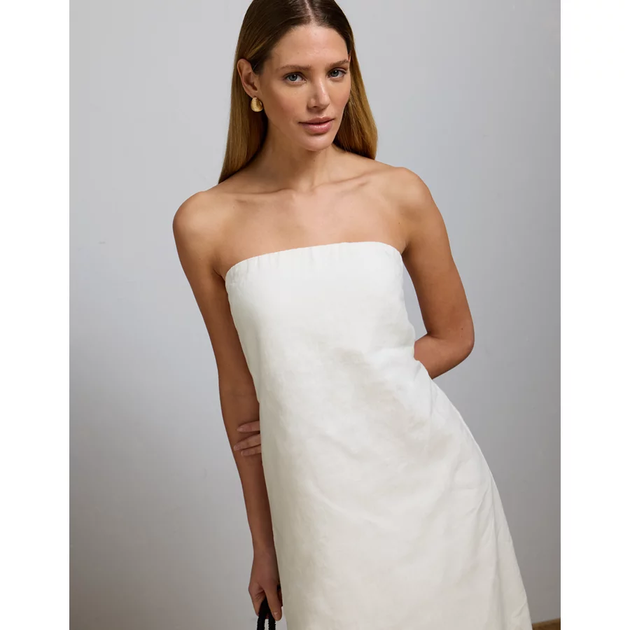 AE77 Strapless Linen Midi Dress – White