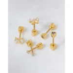 Earring 1: 90% Titanium, 10% Cubic Zirconia; Earring 2: 70% Titanium, 20% Brass, 10% Cubic Zirconia; Earring 3: 60% Titanium, 20% Brass, 10% Cubic Zirconia
