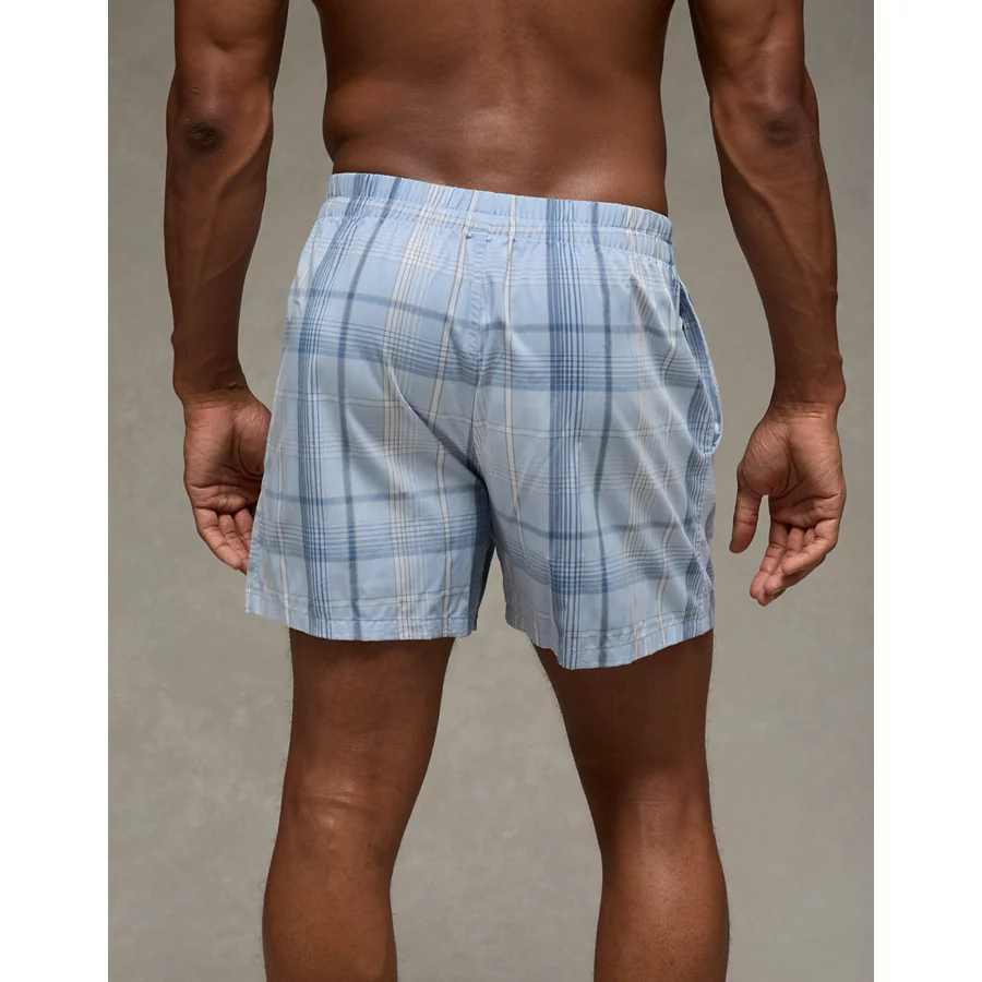 AEO Men’s Plaid Poplin Pocket Boxer Short – Blue Path