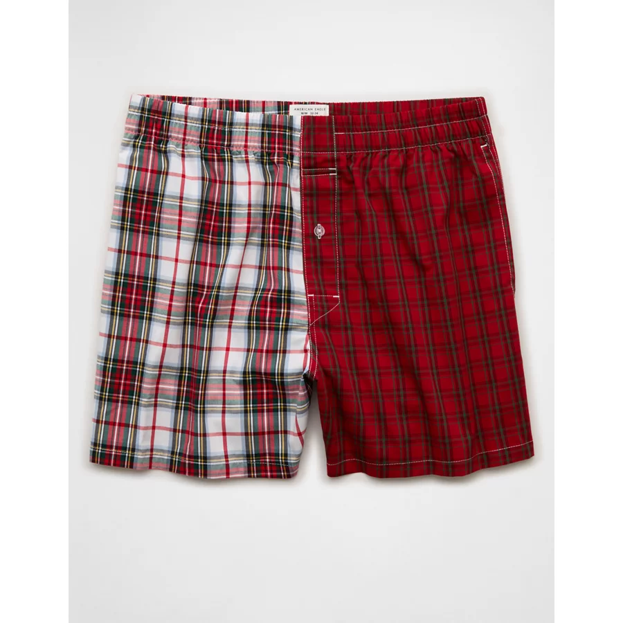 AEO Men’s Plaid Stretch Poplin Pocket Boxer – Red