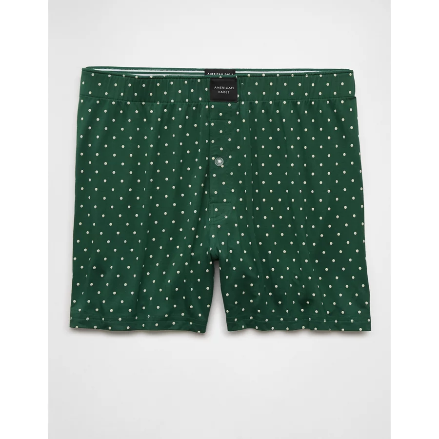 AEO Men’s Polka Dots Slim Knit Ultra Soft Boxer Short – Deep Forest