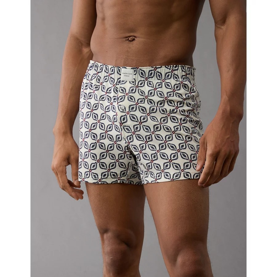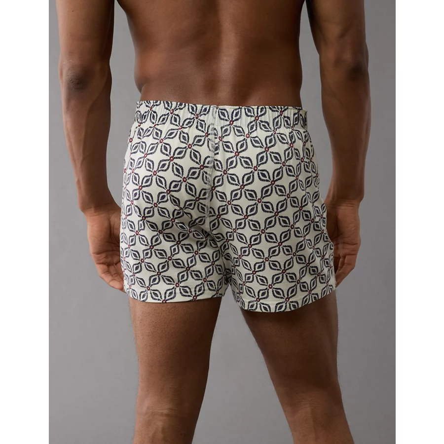 AEO Men’s Printed Slim Knit Ultra Soft Boxer Short – Cream