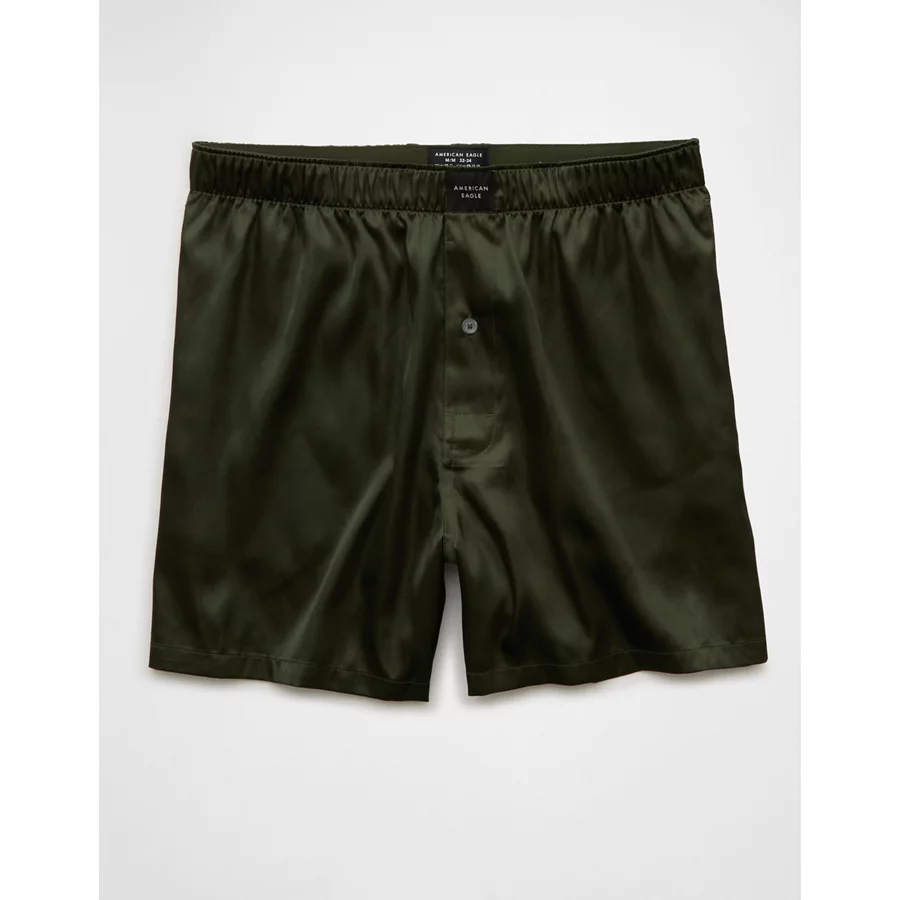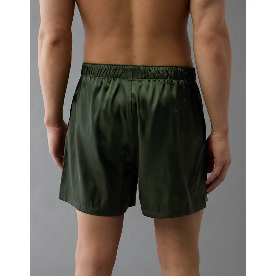 AEO Men’s Solid Satin Pocket Boxer Short – Green Alpine