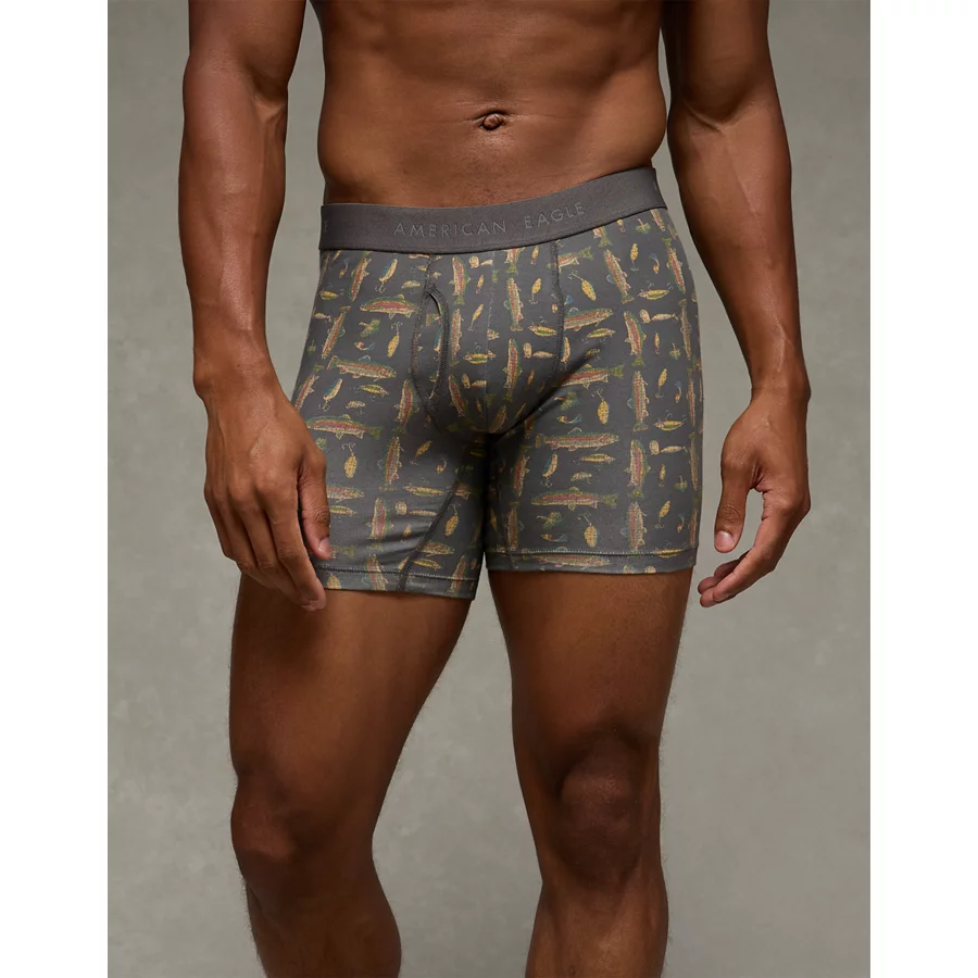AEO Men's Trout Print 6" Flex Boxer Brief - Charcoal