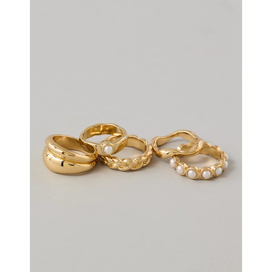 AEO Pearl Rings 5-Pack – Gold