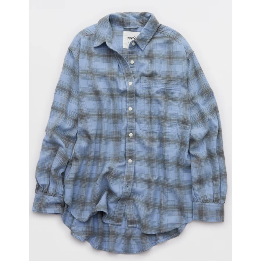 Aerie Anytime Fave Flannel Button Down Shirt – Monaco Blue