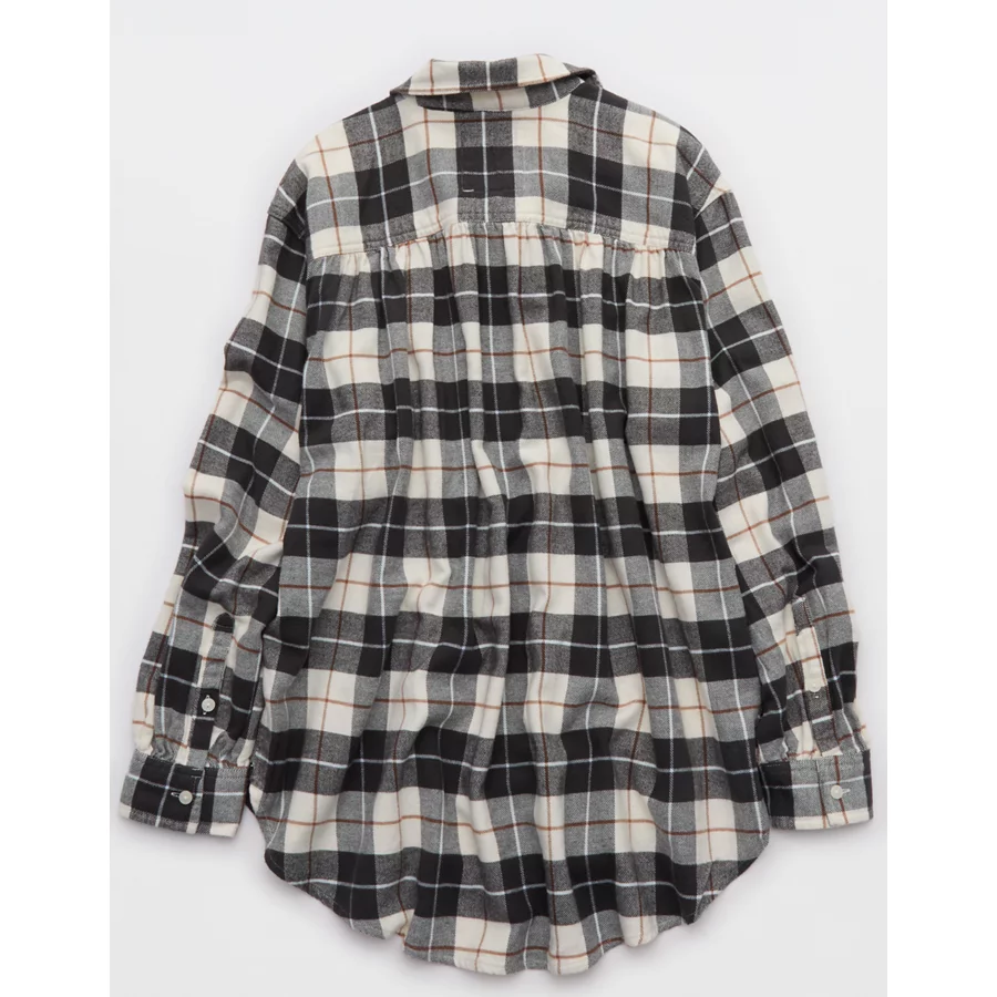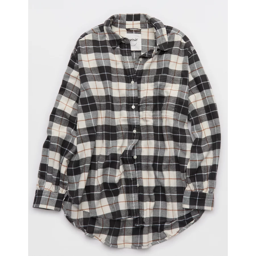 Aerie Anytime Fave Flannel Button Down Shirt – Smoked Gray