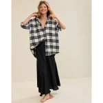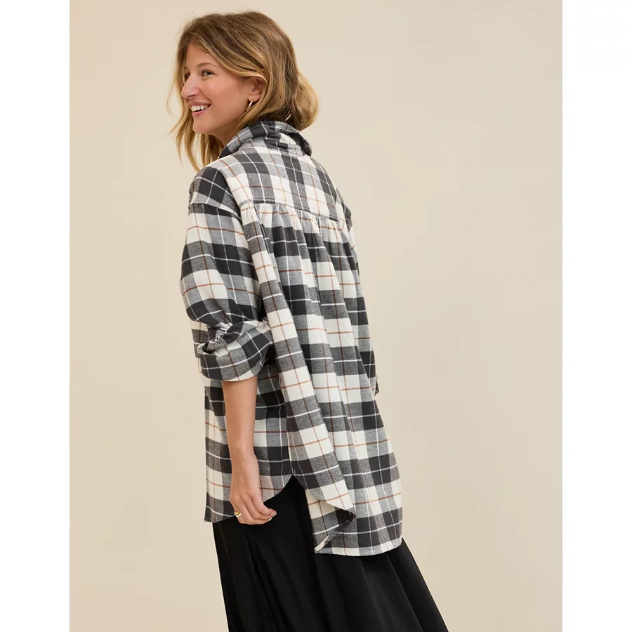 Soft, cozy flannel with a fun plaid printOversized chest pocket (for ALL your sunshine)Functional buttons 100% CottonMachine washImported Oversized and