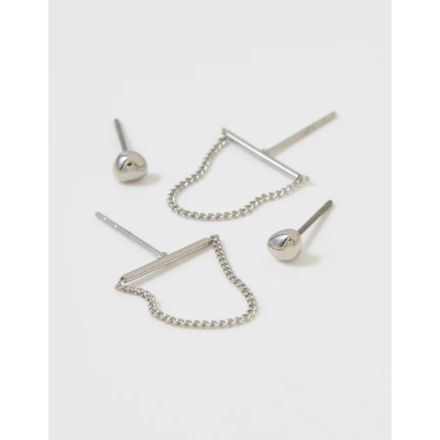 Aerie Bar And Chain Earring 2-Pack – Silver
