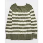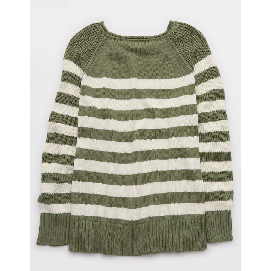 Real Good Everyday yarnRolled necklineRibbed trim on cuffs and hemPointelle deets and split cuffs on the sleevesStripedAccessibility deets: over-the-head access