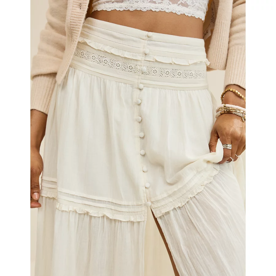 Aerie Boho Button Maxi Skirt – Natural