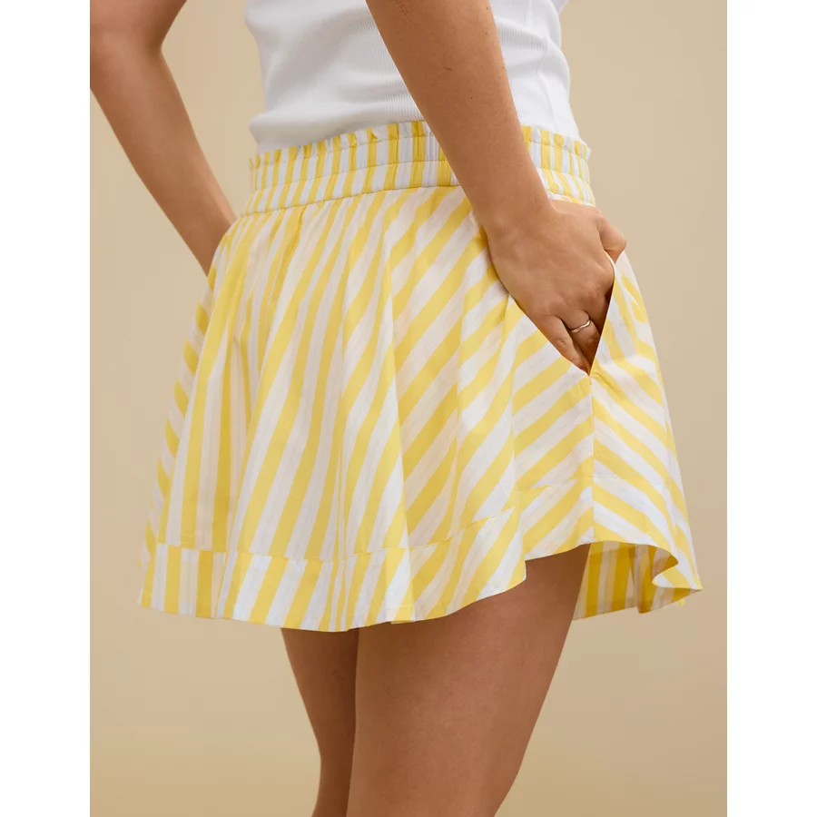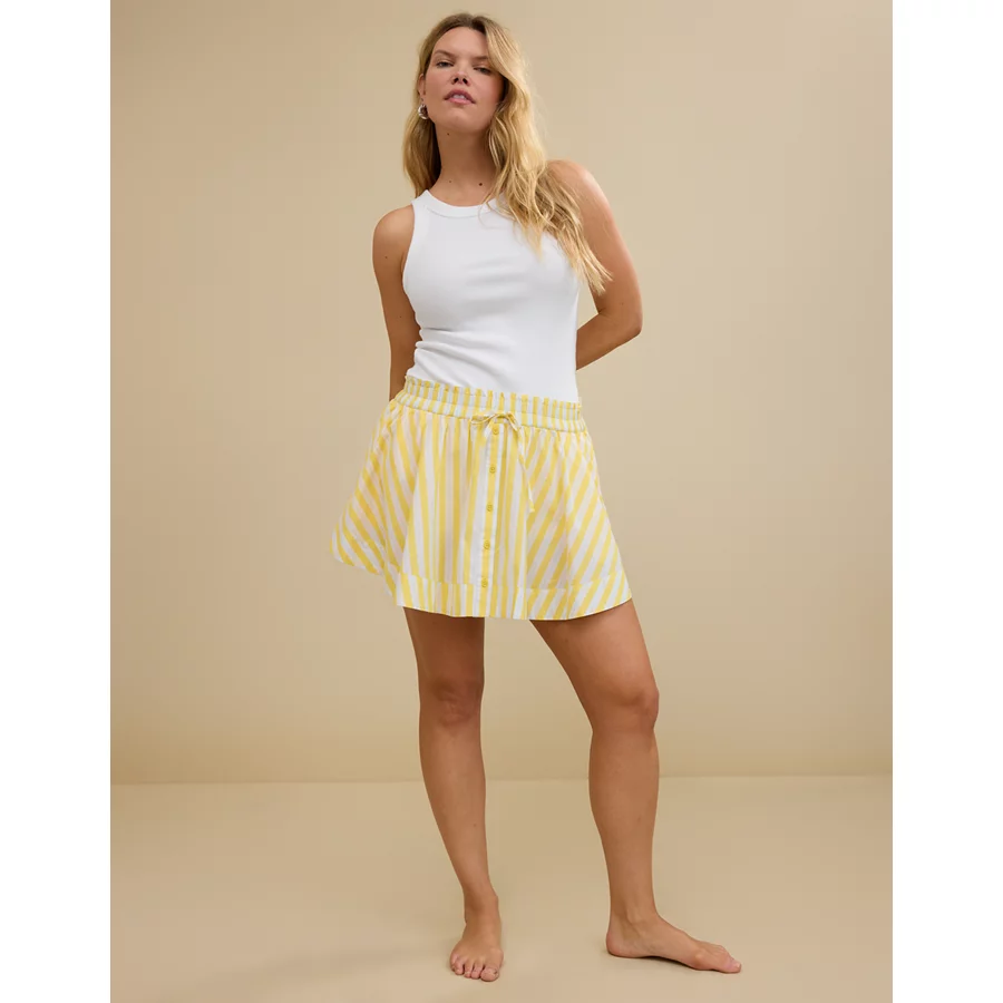 Lightweight, airy cotton poplin in stripesElastic paperbag waistFunctional button front with drawstringLined with boxer shorts 100% CottonMachine washImported Mini length