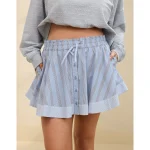 Lightweight gauze fabric with interior lining on top half Smocked waistCenter front slitFunctional buttons on the frontFemme ruffle and crochet
