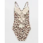 Aerie Buzzed Terry Leopard Strappy Back One Piece Swimsuit – Vintage Vanilla