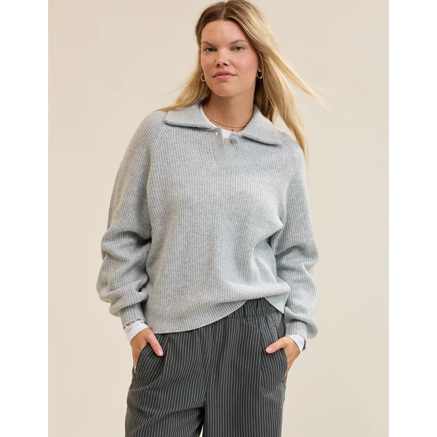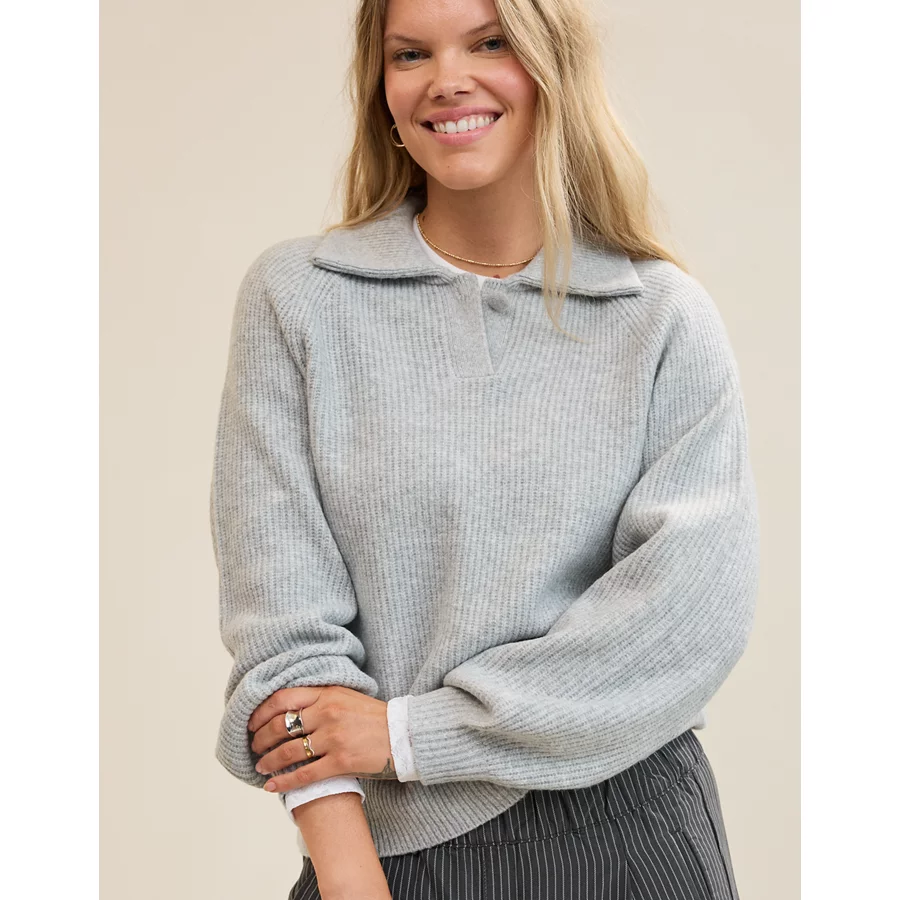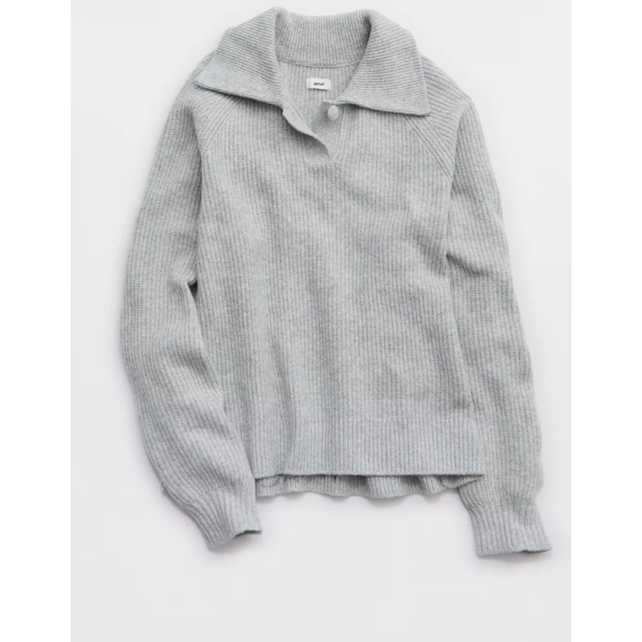 Aerie Classic Quarter Button Sweater – Medium Heather Gray