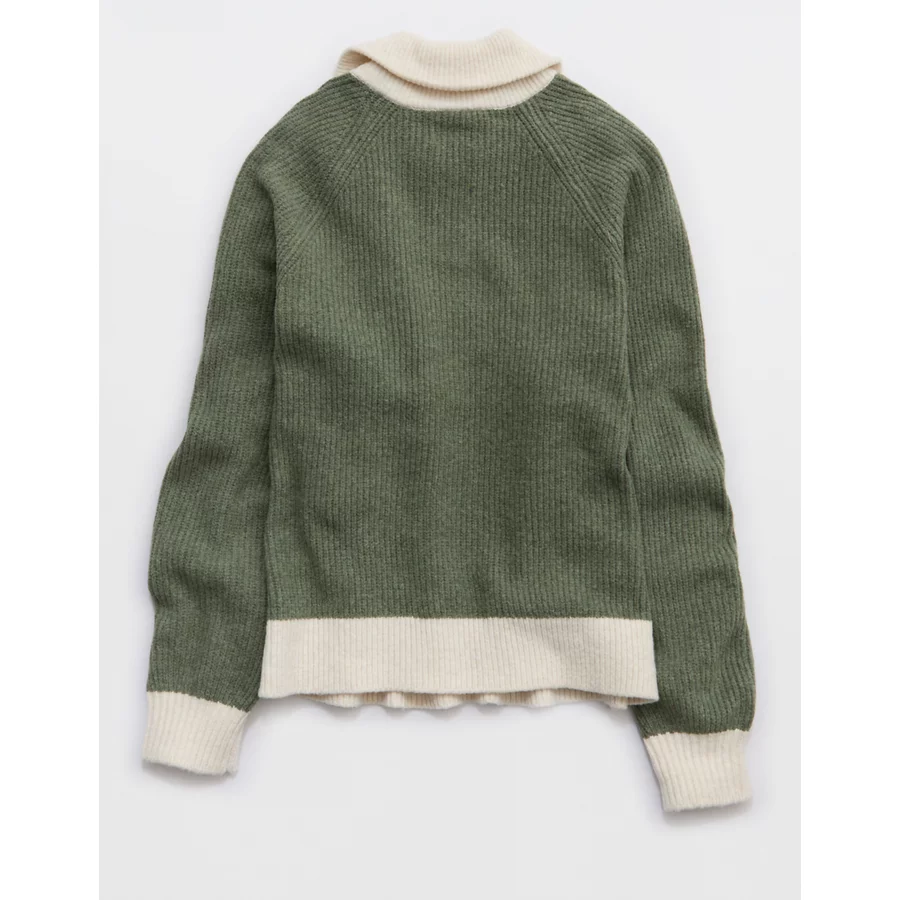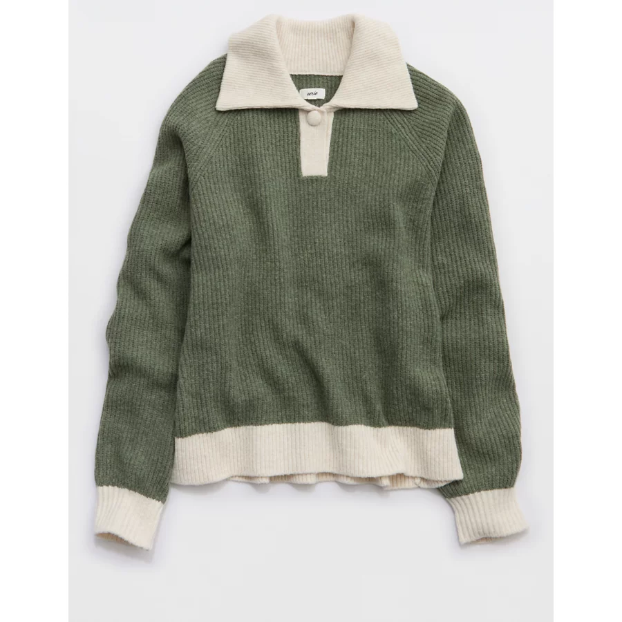 Aerie Classic Quarter Button Sweater – Olive Fun