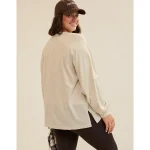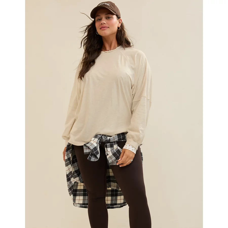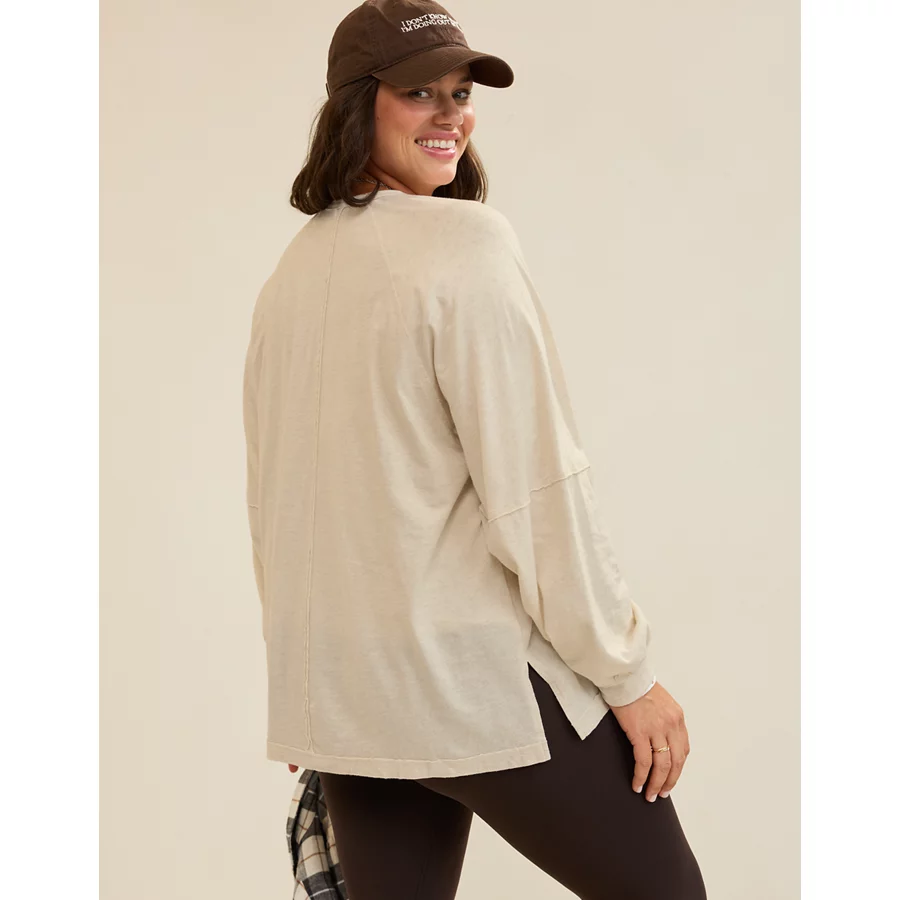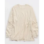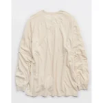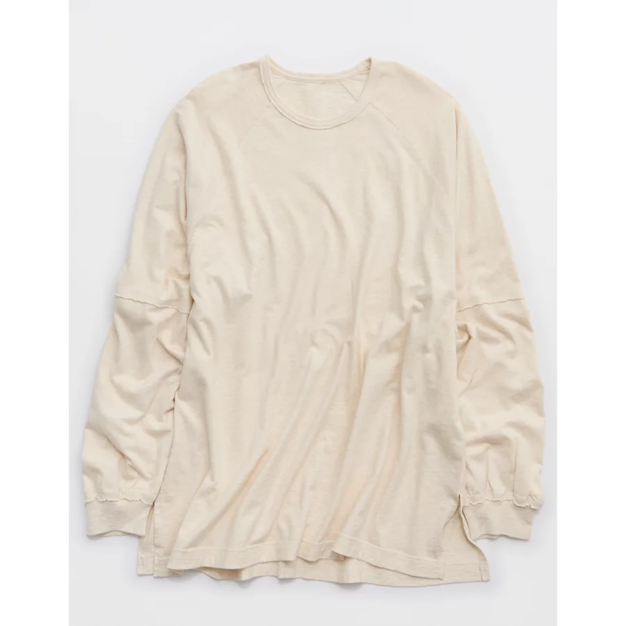 Aerie Cozy Long Sleeve Oversized Boyfriend T-Shirt - Frosty Cream