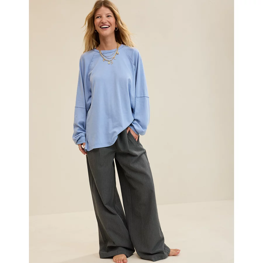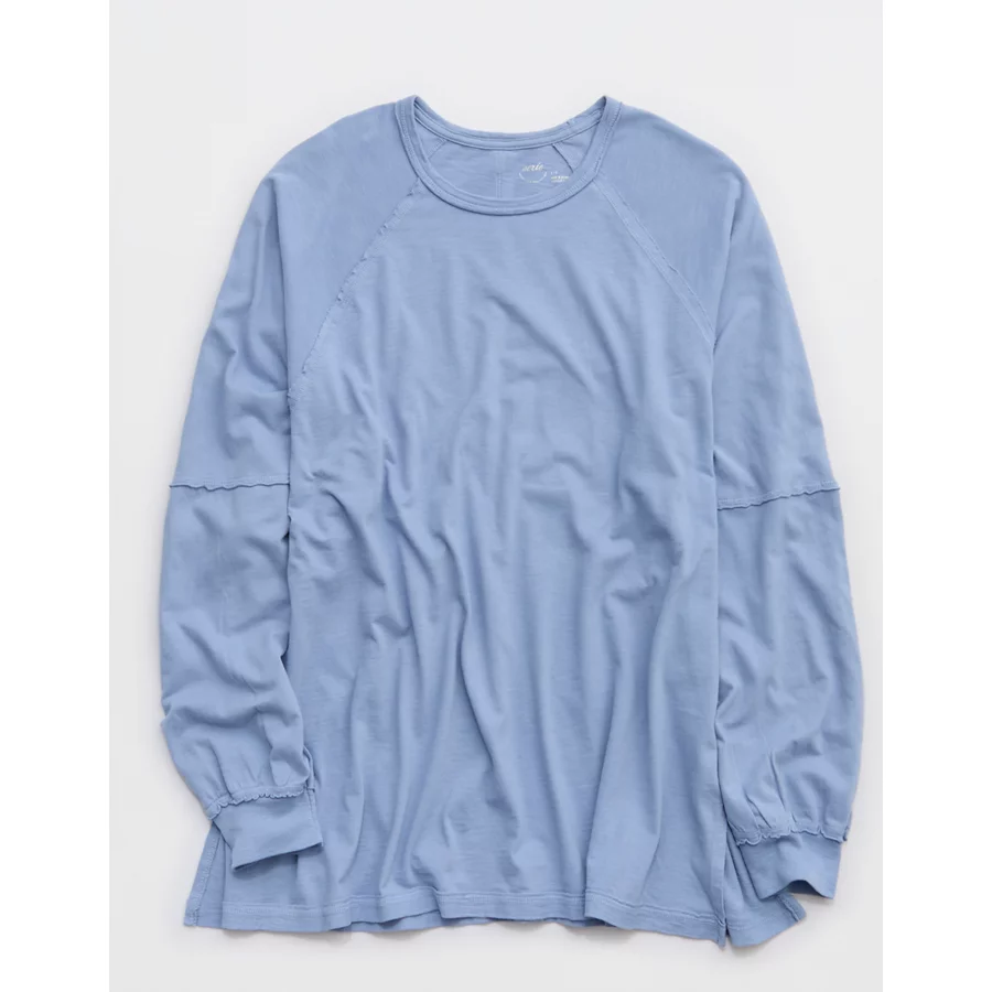 Aerie Cozy Long Sleeve Oversized Boyfriend T-Shirt – Monaco Blue