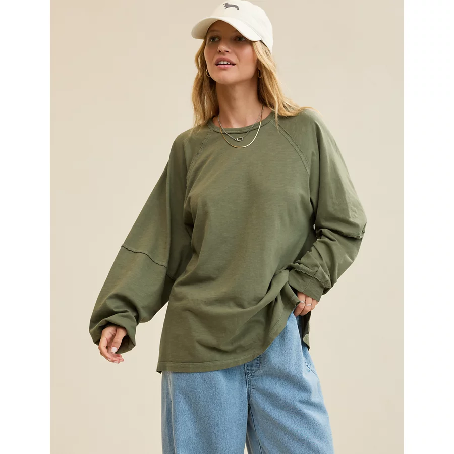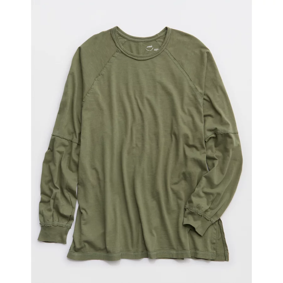 Aerie Cozy Long Sleeve Oversized Boyfriend T-Shirt – Olive Fun