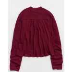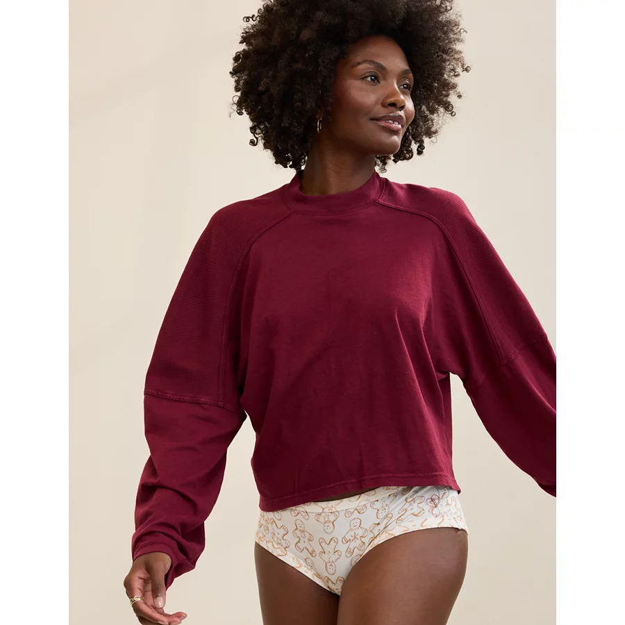 Aerie Cozy Mock-Neck T-Shirt – Deep Cherry
