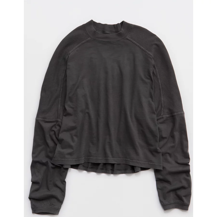 Aerie Cozy Mock-Neck T-Shirt – Smoked Gray