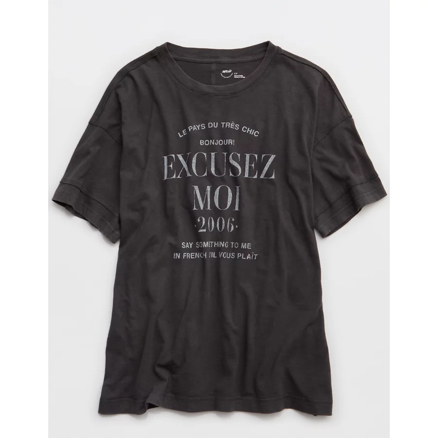Aerie Crew Oversized Boyfriend T-Shirt – Smoked Gray