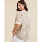 Real Good Everyday yarnRolled necklineRibbed trim on cuffs and hemPointelle deets and split cuffs on the sleevesStripedAccessibility deets: over-the-head access