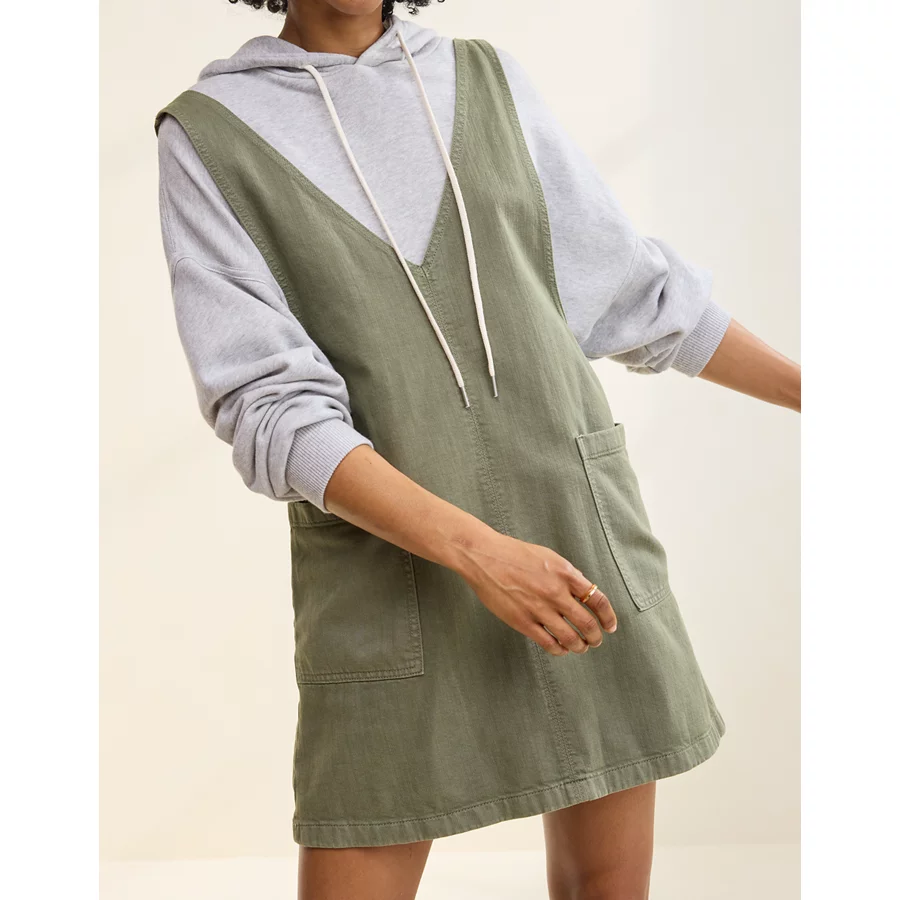 Lightweight gauze fabricAdjustable straps with tie backFlutter sleeve deetsElasticated V-waistSide seam pockets (!!)Accessibility deets: elastic waist, adjustable straps, and over-the-head